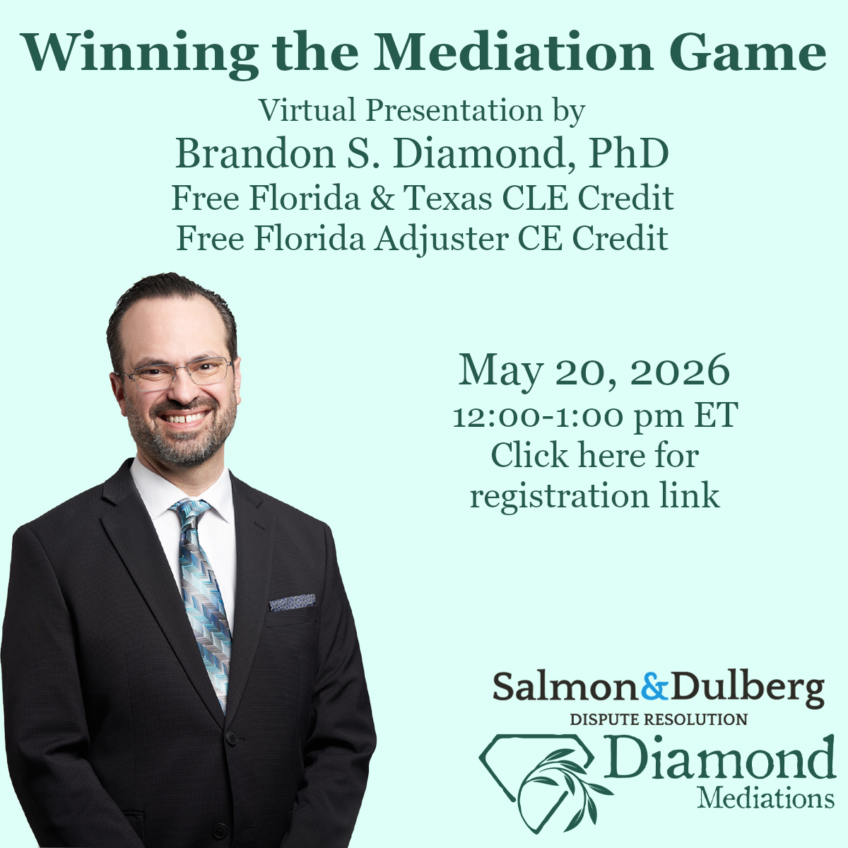 Brandon is not just an expert mediator, he is also an expert educator. He worked hard to make this presentation engaging and informative, creating it by hand using real-life examples and experiences, instead of creating it using AI as quickly as possible.